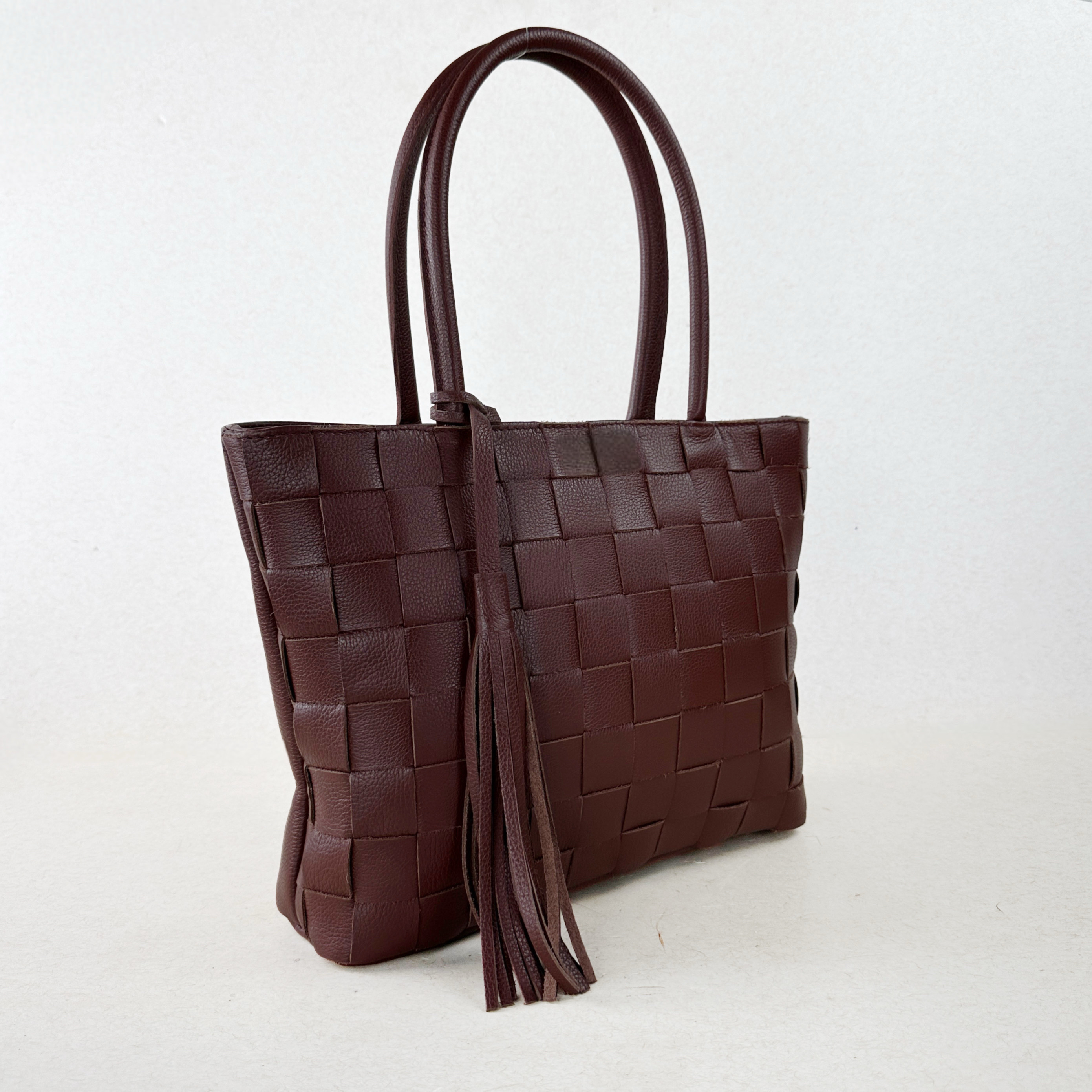 Design e Características Únicas: Destacando-se por sua elegância e originalidade, esta bolsa é feita em couro trançado, adicionando um toque de sofisticação ao seu visual.